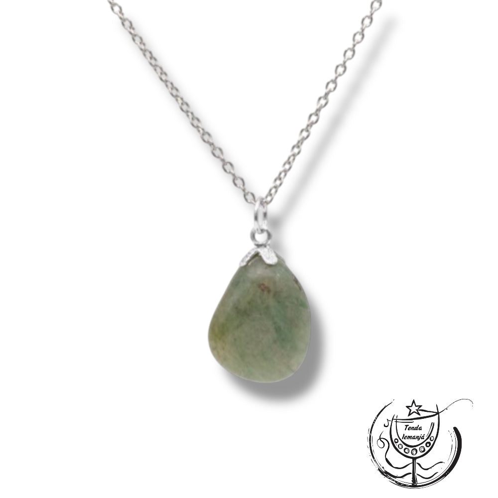 Colar - Quartzo Verde Aço Topo Prata