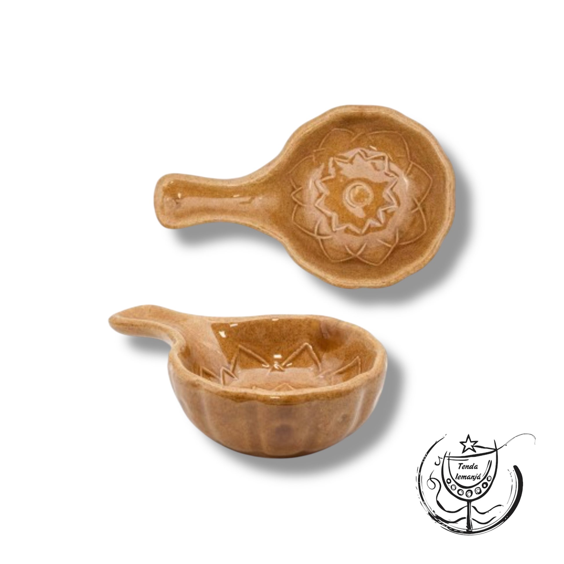 O Queimador é um recipiente em cerâmica indicado para mistura e calor todo o tipo de incensos, defumadores em bombitas, em tabletes, em cones, resinas e ervas para defumação.