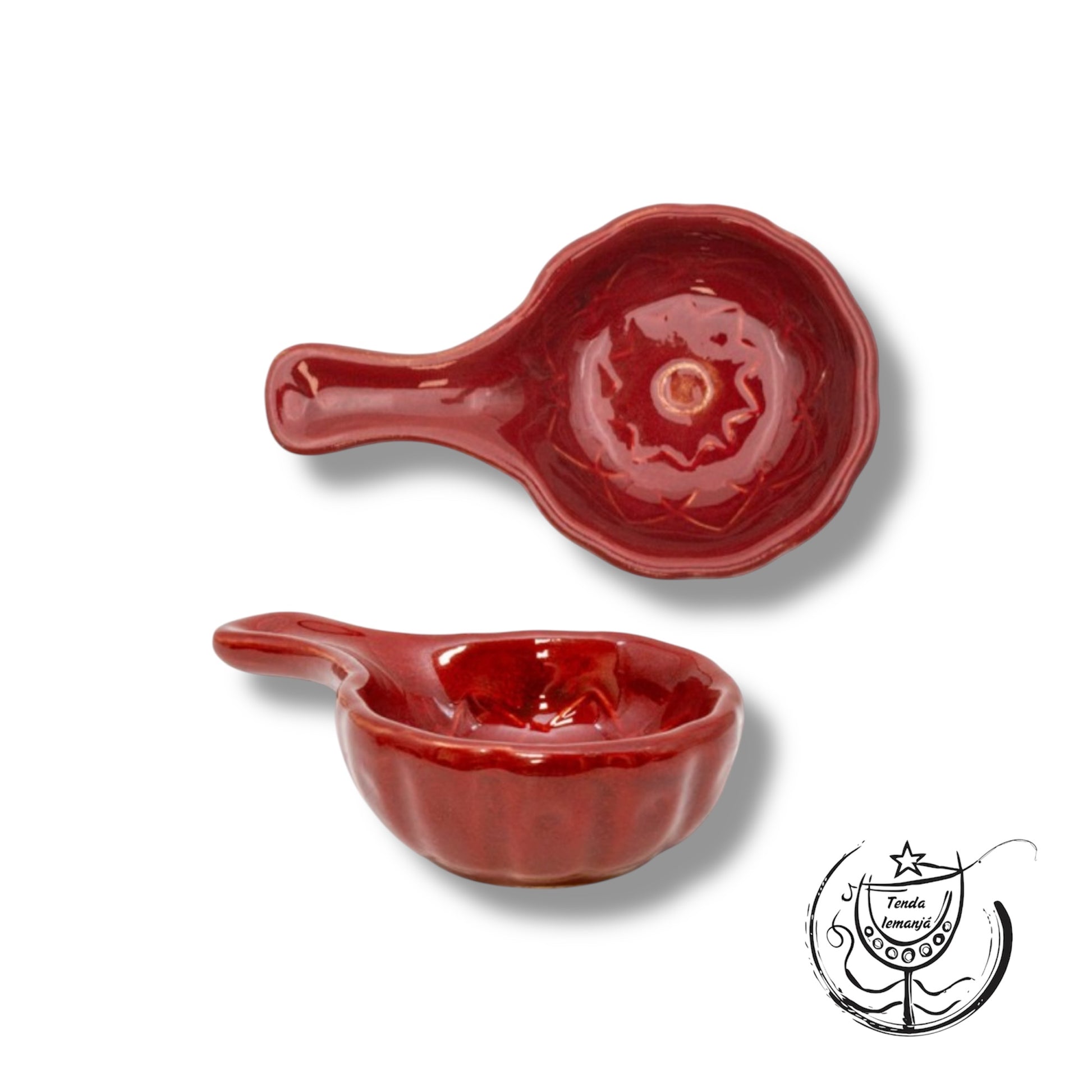 O Queimador é um recipiente em cerâmica indicado para mistura e calor todo o tipo de incensos, defumadores em bombitas, em tabletes, em cones, resinas e ervas para defumação.
