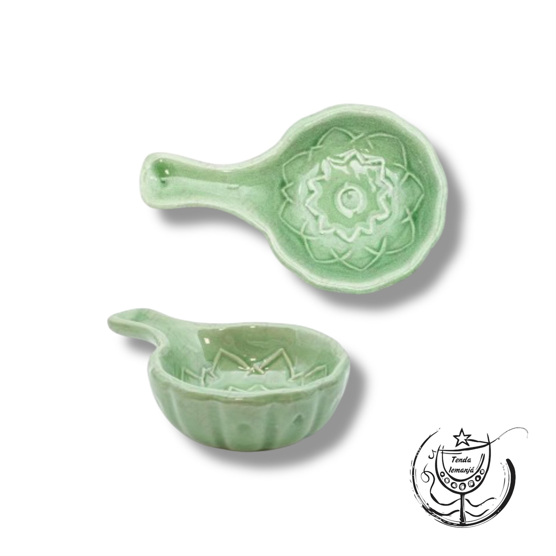 O Queimador é um recipiente em cerâmica indicado para mistura e calor todo o tipo de incensos, defumadores em bombitas, em tabletes, em cones, resinas e ervas para defumação.
