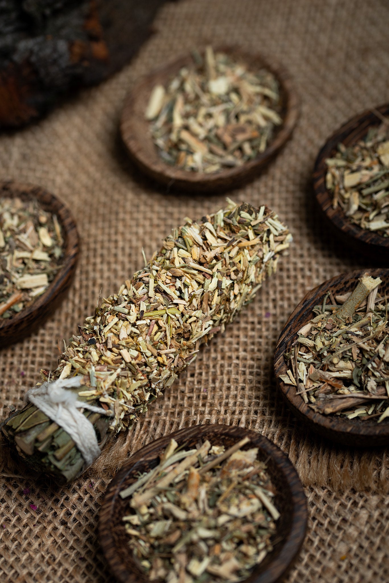 Composição: ervas aromáticas, resinas naturais, aglutinante natural e óleos essenciais.