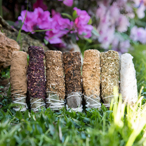 Composição: ervas aromáticas, resinas naturais, aglutinante natural e óleos essenciais.